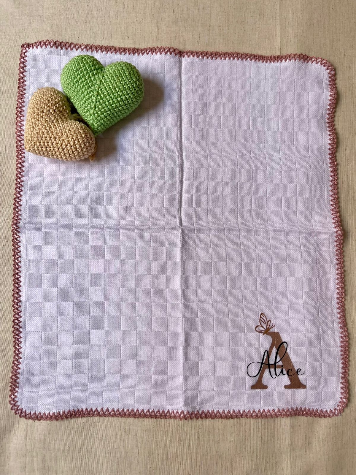 Acabamento em picueta(crochezinho ) em toda volta da peça.